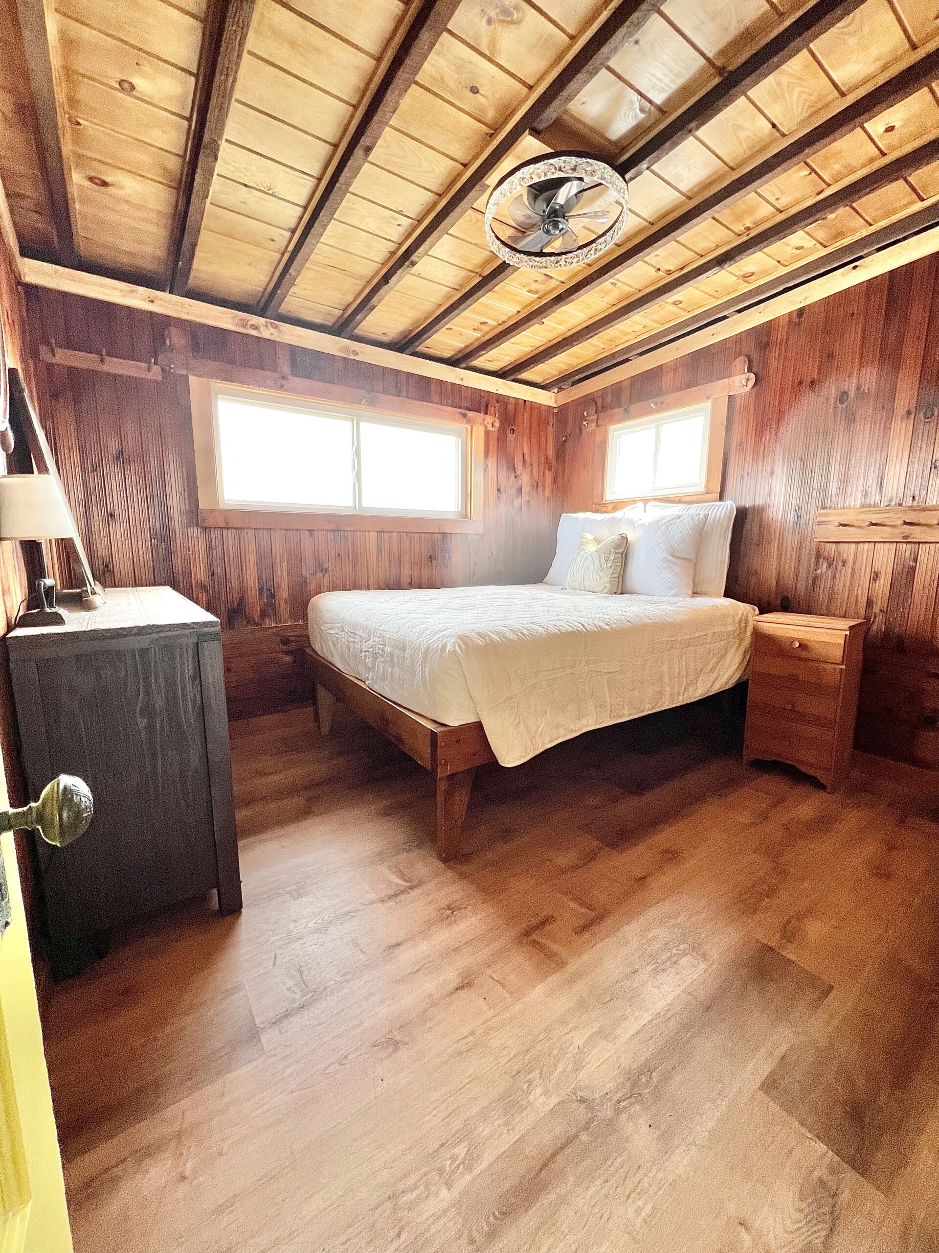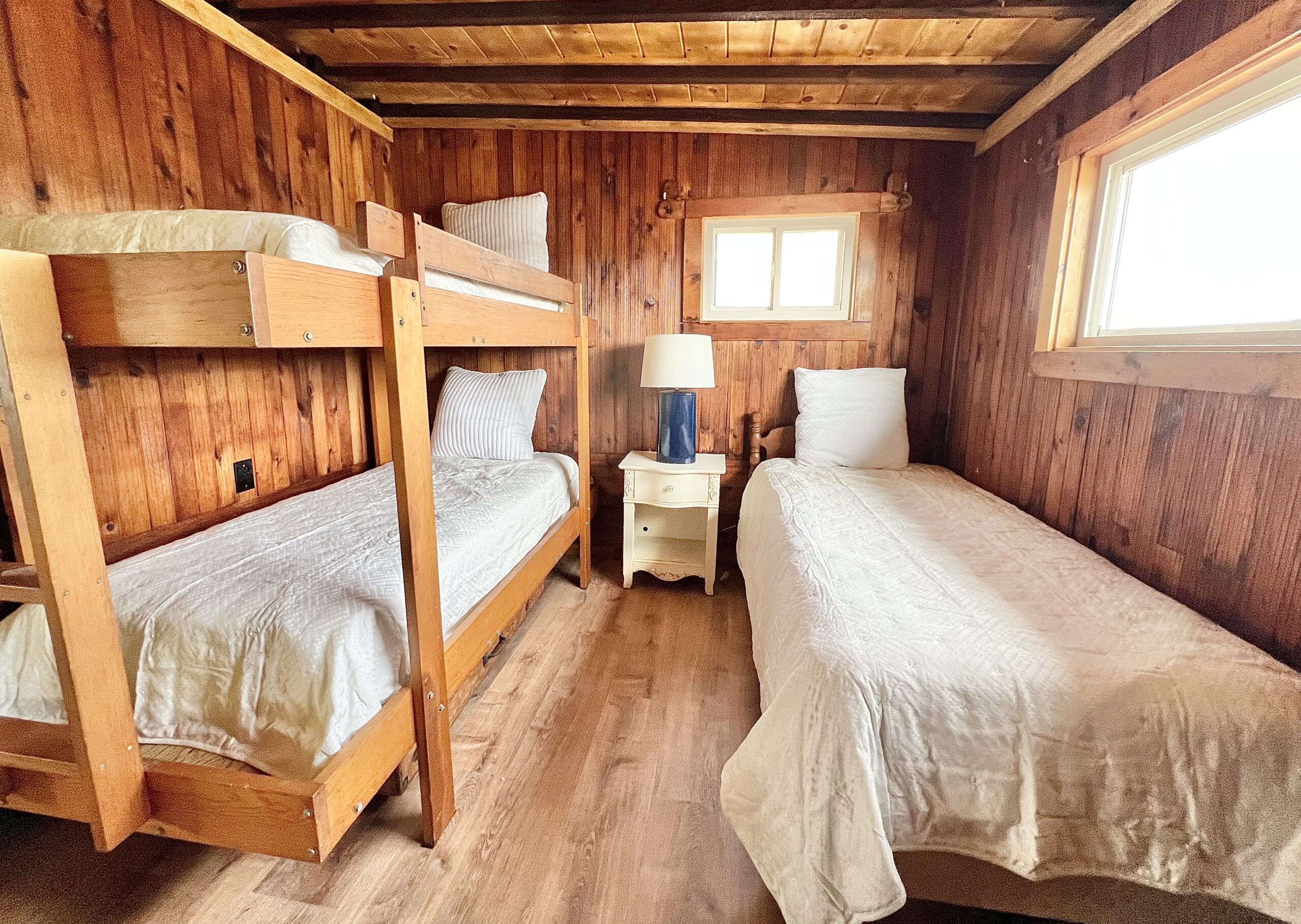 Sleeps 5: 1 Queen and 3 Twin size beds.
